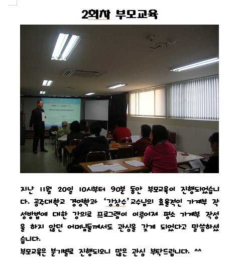 2회차 부모교육이 진행되었습니다. 게시글 작성정보 작성자 금강종합사회복지관 작성일 10-11-22 11:38 조회수 1,611 댓글수 0 목록 게시글 본문 첨부파일 1개 02ace154_Image1.jpg (51.8K) 0회 다운로드 첨부일시 : 2010-11-22 11:38:00 이전글 3회차 심리치료 프로그램이 진행되었습니다. 10-11-22 다음글 2010년 청춘삼박자 "2회차 특강"이 있었습니다. 10-11-19 댓글 0 등록된 댓글이 없습니다. 목록