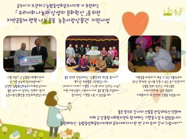 공주시청과 농협중앙회공주시지부에 깊은 감사의 인사를 드립니다.