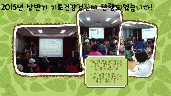 상반기 기초건강검진이 진행되었습니다. 게시글 작성정보 작성자 금강종합사회복지관 작성일 15-05-04 11:39 조회수 2,024 댓글수 0 목록 게시글 본문 첨부파일 1개 기초건강검진.png (1.4M) 0회 다운로드 첨부일시 : 2015-05-04 11:39:29 이전글 청춘삼박자 1학기 개강식이 진행되었습니다 15-05-12 다음글 2015년 4월 어르신전문봉사단 "향기로운 만남"이 진행되었습니다^_^ 15-04-27 댓글 0 등록된 댓글이 없습니다. 목록
